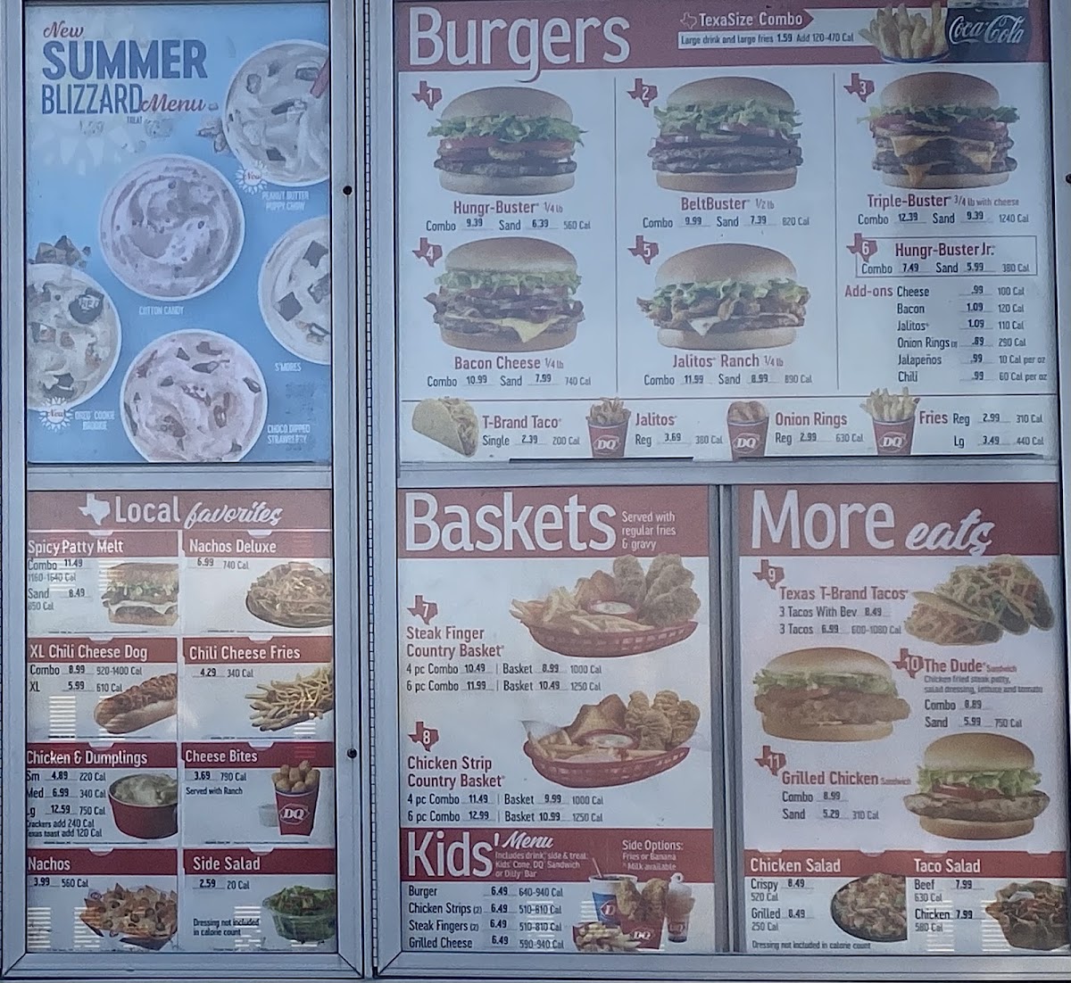 Dairy Queen at 9933 Montana Ave in El Paso is a beloved fast food and ice cream destination known for its classic comfort menu and iconic treats. The savory offerings highlight their Chicken Strip Country Basket® and Steak Finger Country Basket®, both served with crispy fries, Texas toast, and rich cream gravy — a perfect harmony of hearty flavors. Salads like the Crispy Chicken Salad and Grilled Chicken Salad deliver freshness paired with generous portions of chicken, cheddar cheese, bacon bits, and fresh greens. Sides such as golden fries, crispy jalapeño strips called Jalitos®, and perfectly seasoned onion rings complement the meals beautifully. Of course, Dairy Queen’s dessert menu shines with its famous Blizzards, sundaes, and peanut buster parfaits, trusted favorites for decades. The blend of fast, courteous service and consistently warm, satisfying food makes this location a go-to spot for both quick bites and nostalgic indulgence.